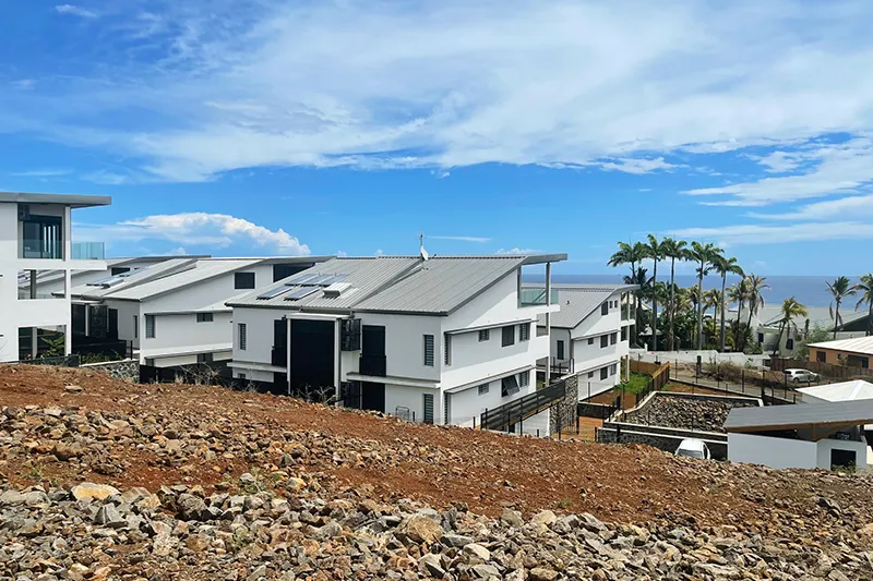 Tous les programmes sont construits selon la norme RTAA DOM (Réglementation Thermique Acoustique et Aération des Départements d'Outre-Mer), garantissant la qualité constructive, le confort thermique et l'éligibilité aux dispositifs de défiscalisation.